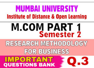 IDOL Mumbai University important questions bank M.com Part 1 (sem. 2) RESEARCH METHODOLOGY FOR BUSINESS Q.9. What are the factors determine sample size? ANS: 1) Area of Research: The number of sample respondents depends on the area of research. If the research is conducted at national level, it may require more number of … Read more
